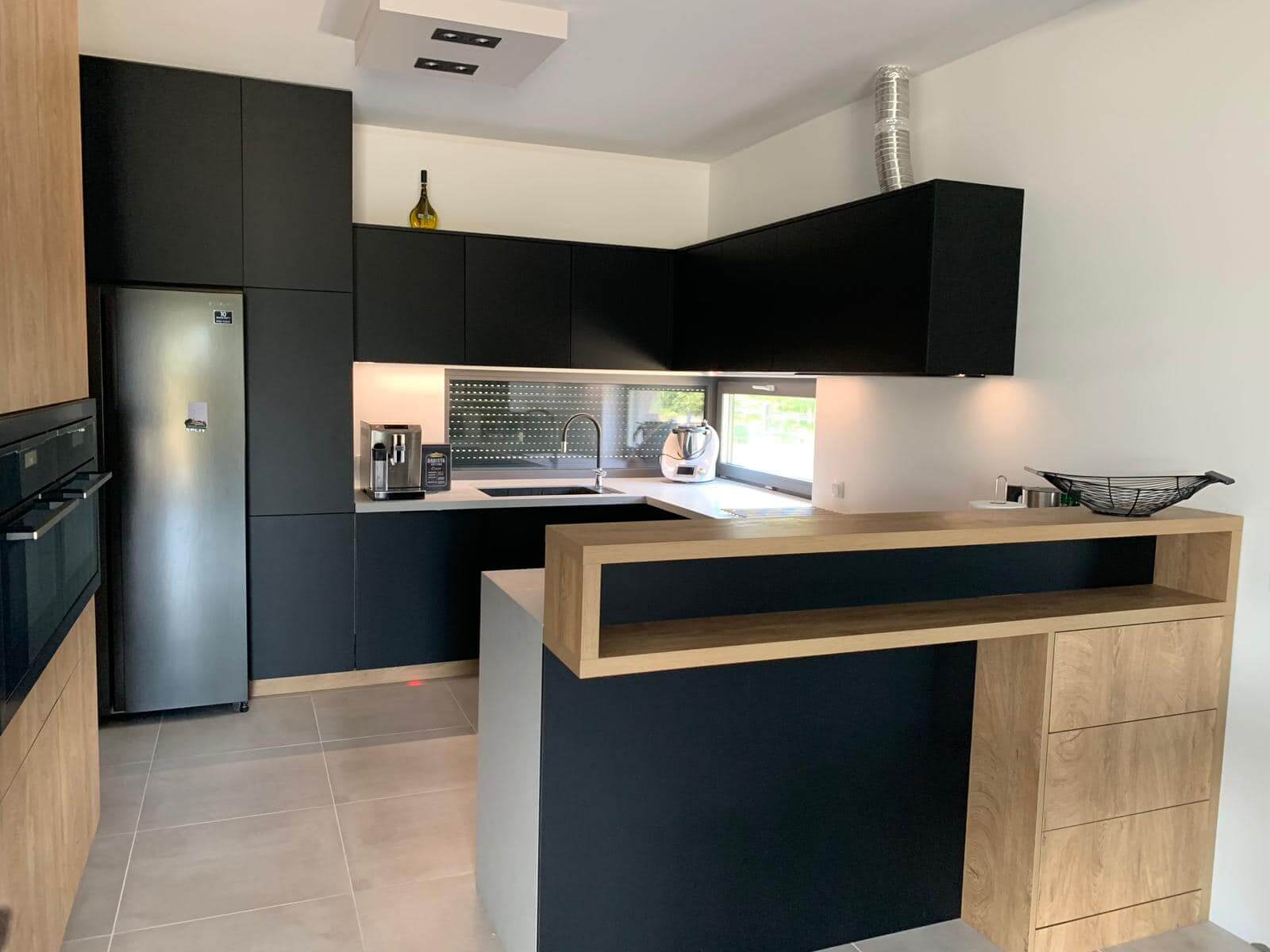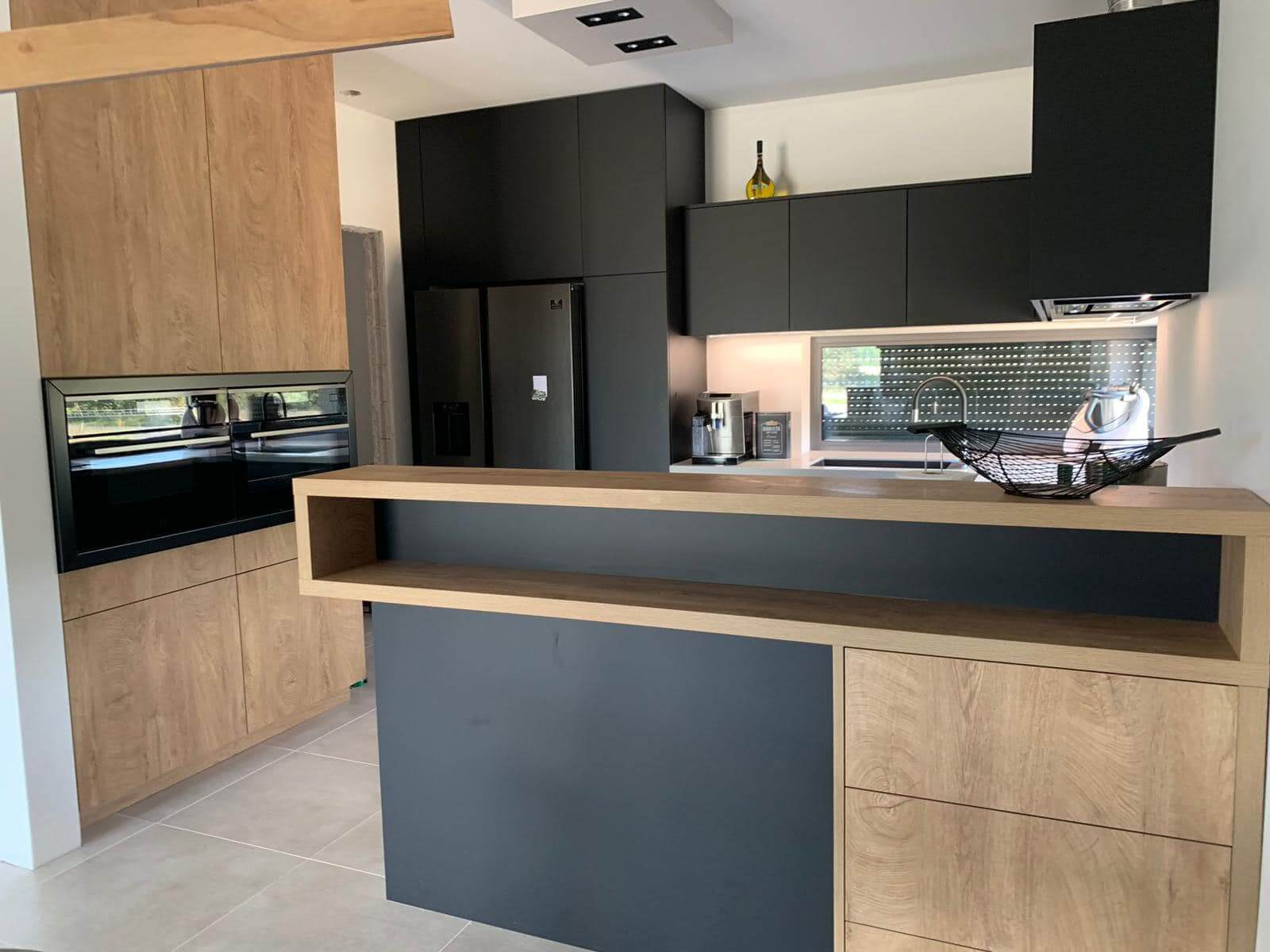 Nowoczesna kuchnia z wykorzystaniem wysokiej jakości płyt EGGER i KAINDL, które zapewniają trwałość i estetykę.