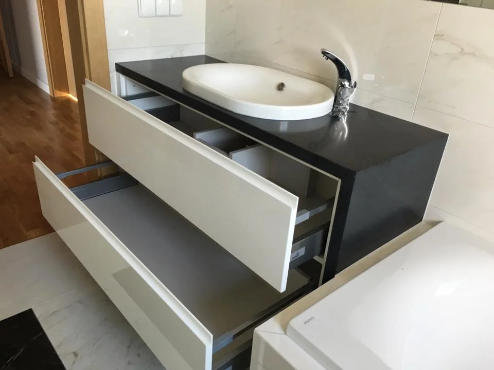 Oferujemy rozwiązania odporne na wilgoć i łatwe w utrzymaniu czystości, które doskonale sprawdzają się nawet w niewielkich łazienkach. Z nami zyskujesz kompleksową obsługę: od projektu, przez wykonanie, aż po montaż. Stawiamy na indywidualne podejście, aby stworzyć meble spełniające wszystkie Twoje oczekiwania i potrzeby.